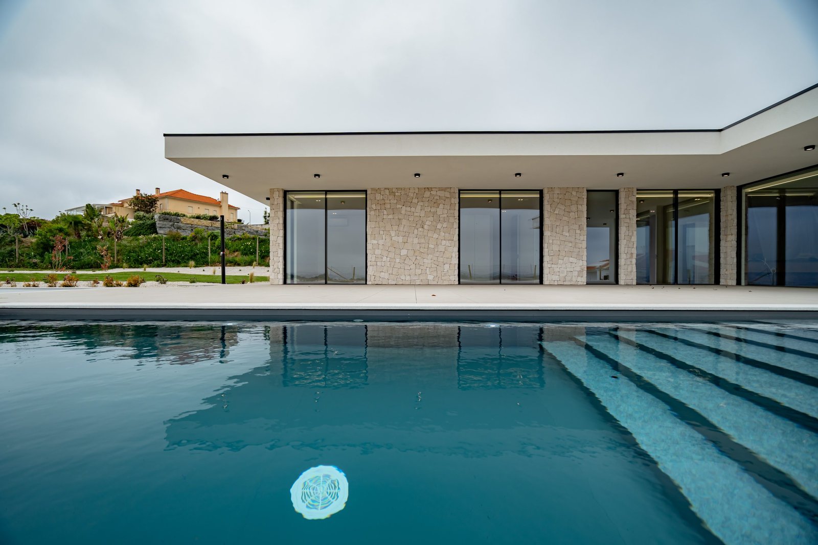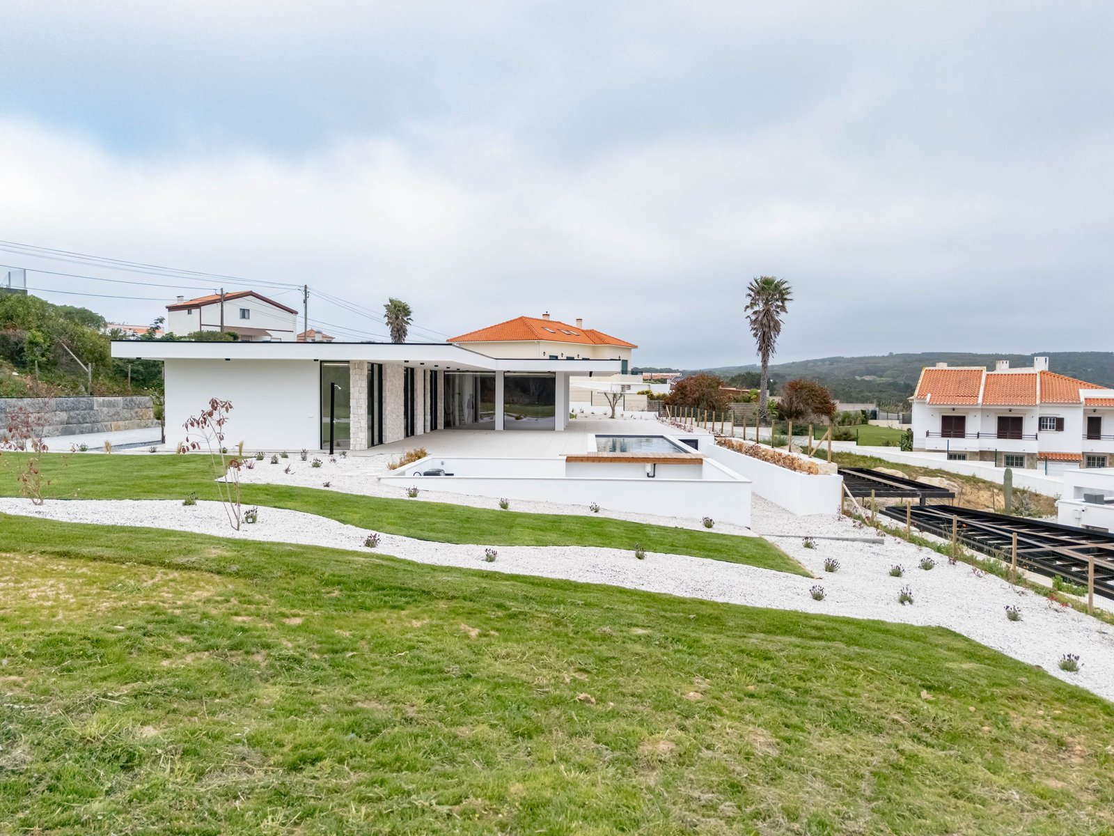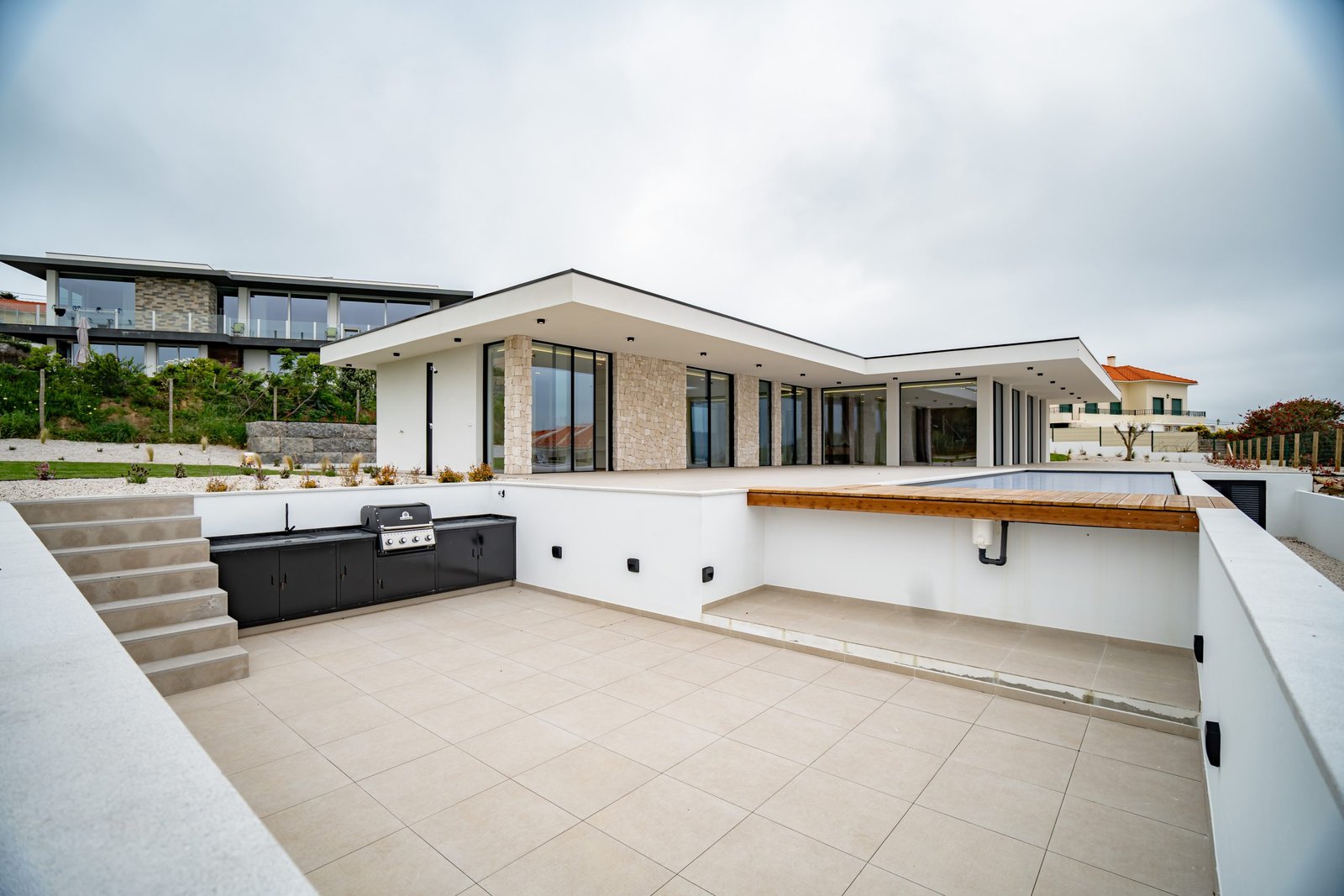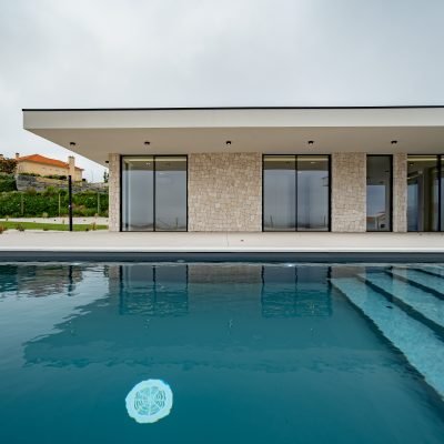 Com 400 m² de área construída, lote de 2000 m², composta por 3 quartos, sendo 3 suítes, cozinha e lavandaria equipadas, painéis solares, climatização, garagem para 3 carros e ampla área de lazer com piscina, outdoor kitchen, sunken firepit e jardim com vistas desafogadas.